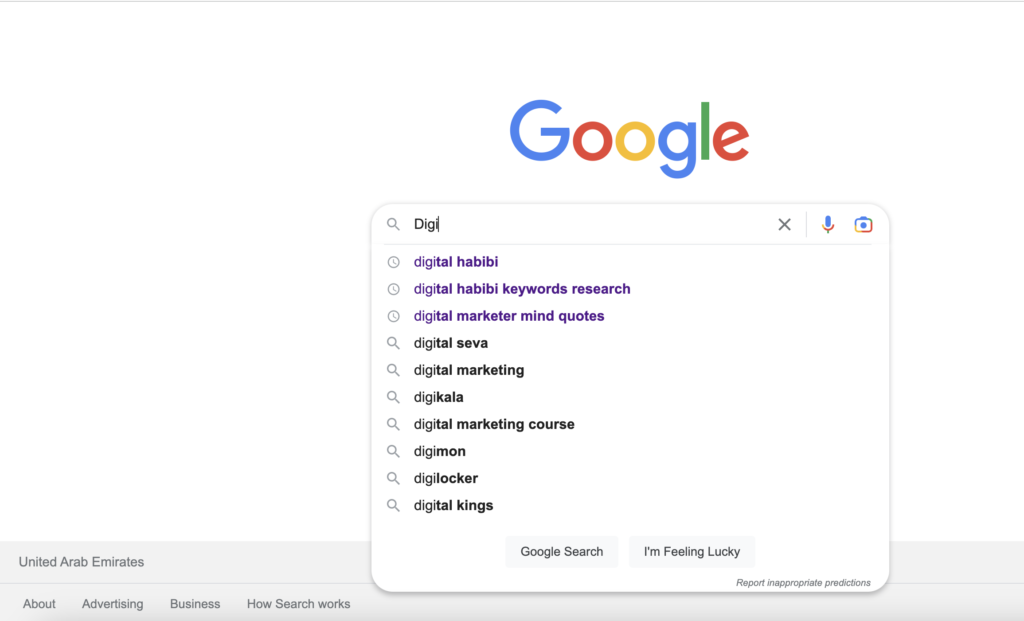As soon as you enter a single letter or a word, you’ll immediately find a drop-down box that will populate with the list of predictions made by Google before you have finished typing the entire thing. This specific feature is known as Google autocomplete.